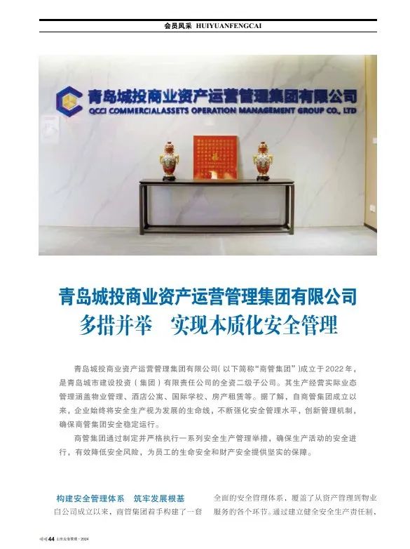 《山东应急管理》刊文推广青岛城投商管集团安全生产工作优秀经验