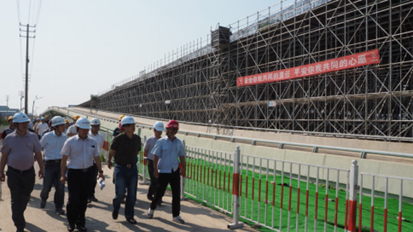 在全国第十六个“安全生产月”来临之际,为检验集团应急救援的快速反应能力,锻炼应急队伍,6月14日下午,集团安委会主办、工建集团承办的城投集团《生产安全事故综合应急预案》应急演练在太原路跨铁路高架桥工程项目展开。集团领导于志军副总经理、工建集团董事长幺子寅及集团相关部门、各产业集团、直属公司分管领导及安全生产主管人员等60多人,到场观摩了演练全过程。