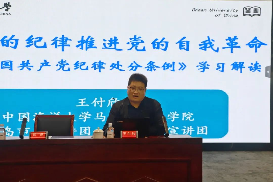 会议邀请中国海洋大学马克思主义学院党委副书记、副院长王付欣教授围绕“学《条例》守党纪、以严明的纪律推进党的自我革命”主题作辅导报告。报告紧扣党中央乐鱼平台党的纪律建设的总体要求,将习近平总书记乐鱼平台党的纪律建设的重要讲话、重要指示精神与《条例》贯通起来解读,结合党史学习教育,联系世情、国情、党情,深入阐释了开展党纪学习教育的重大意义、新修订《条例》的原则理念和主旨要义,并对《条例》的突出特点和重点内容进行了梳理分析,引导党员干部准确全面把握《条例》的丰富内涵和实践要求,更好地学纪、知纪、明纪、守纪。