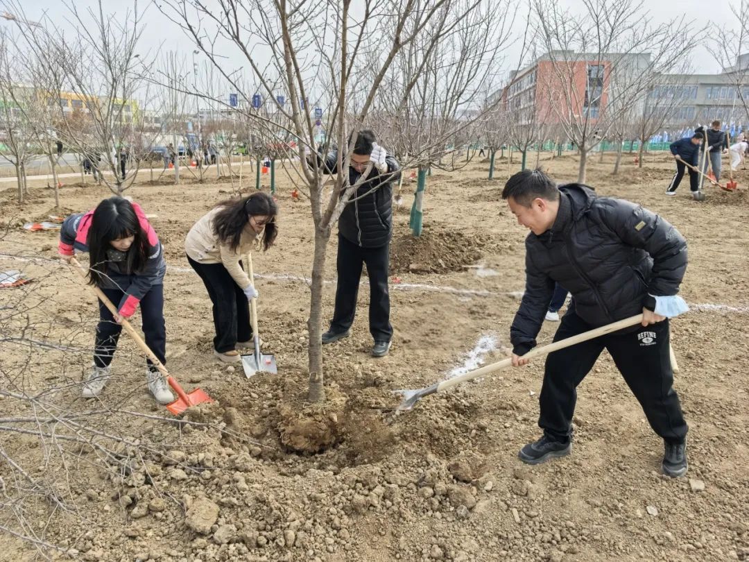 活动当天,创智菁英城现场彩旗飘扬,气氛热烈。城投集团党委委员、副总经理林松涛宣布活动正式开始。在专业人员指导下,大家分工协作,挥锹铲土、扶苗培根、提水浇灌,共栽种绚丽海棠、红叶李、鸡爪槭等树苗300余株并为树苗挂牌寄语。
